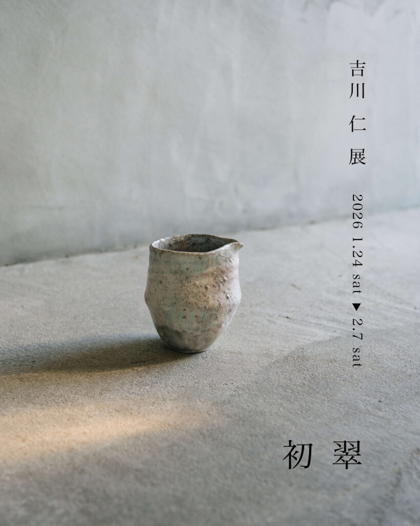 - 2026年最初のメインテーブル展示は、陶芸家・吉川仁さんの作品が並びます。